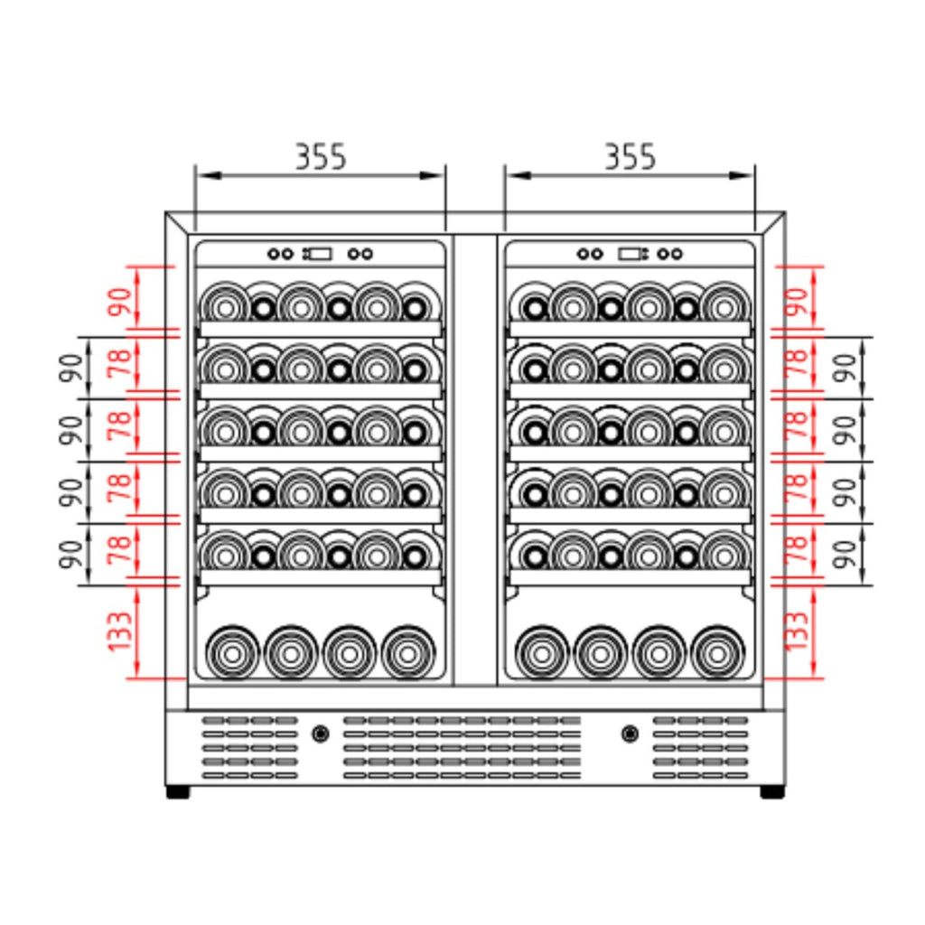Dual-Zone Cooling: Independently control two temperature zones (35–68°F) for reds and whites.