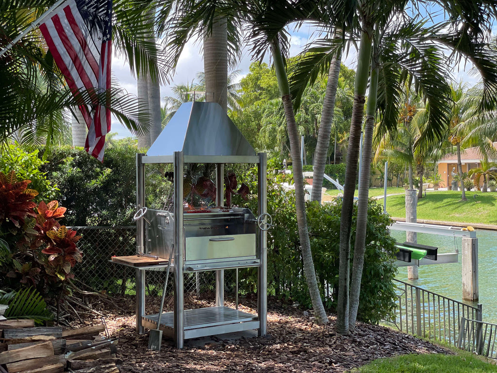 Built to last a lifetime, the BBQ02SS includes a foldable stainless prep table, front and rear doors for airflow and easy refueling, and even a built-in bottle opener for the chef. Partially pre-assembled and shipped free in the contiguous US, this is the ultimate Gaucho-style grill for home or professional use.